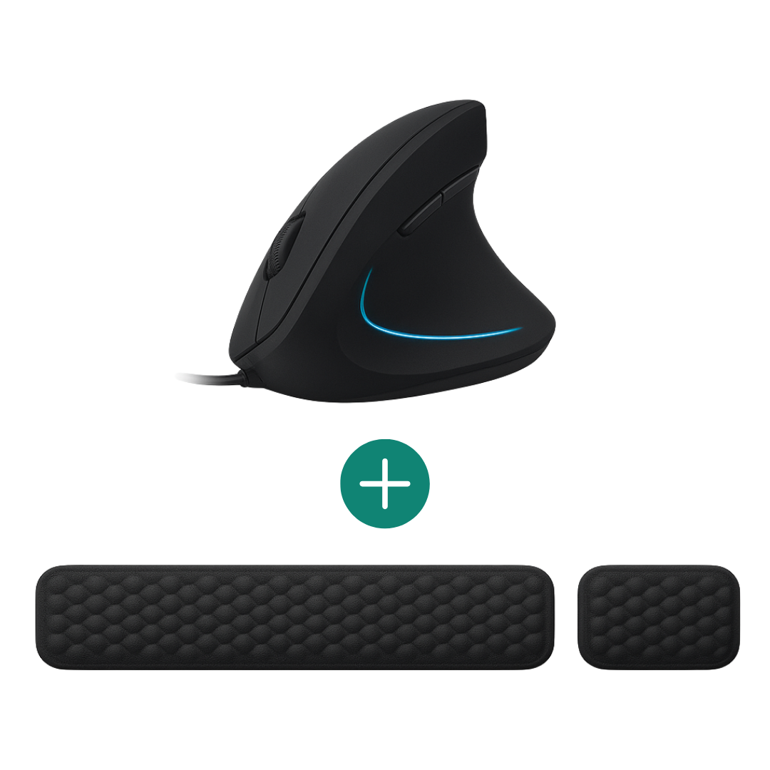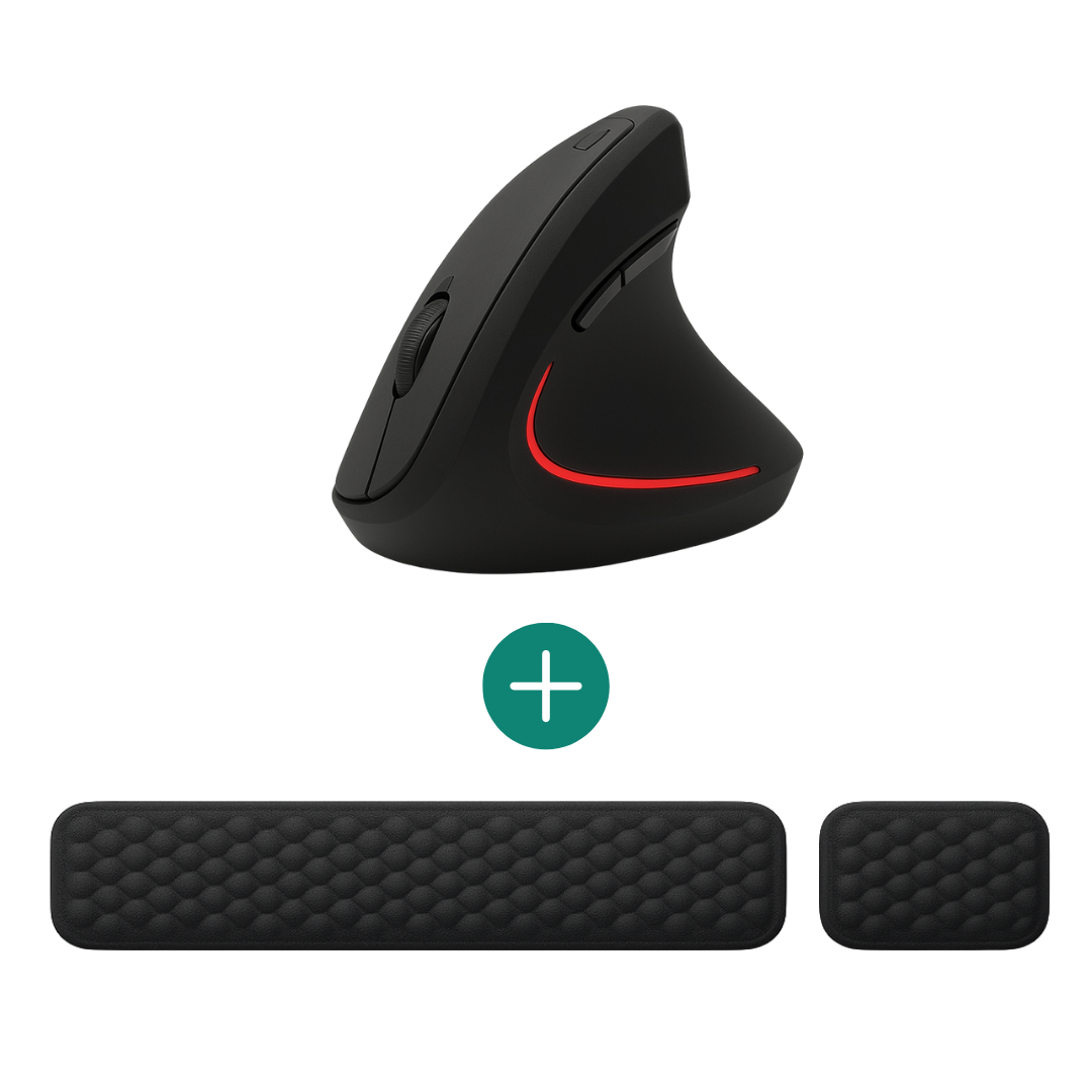 Dieses Bundle wurde speziell für Menschen mit einseitigen Belastungen durch Maus und Tastatur entwickelt. Die gepolsterte Handauflage sorgt für entspannte Haltung beim Tippen, die vertikale Maus unterstützt eine natürliche Handposition – für schmerzfreies, produktives Arbeiten.